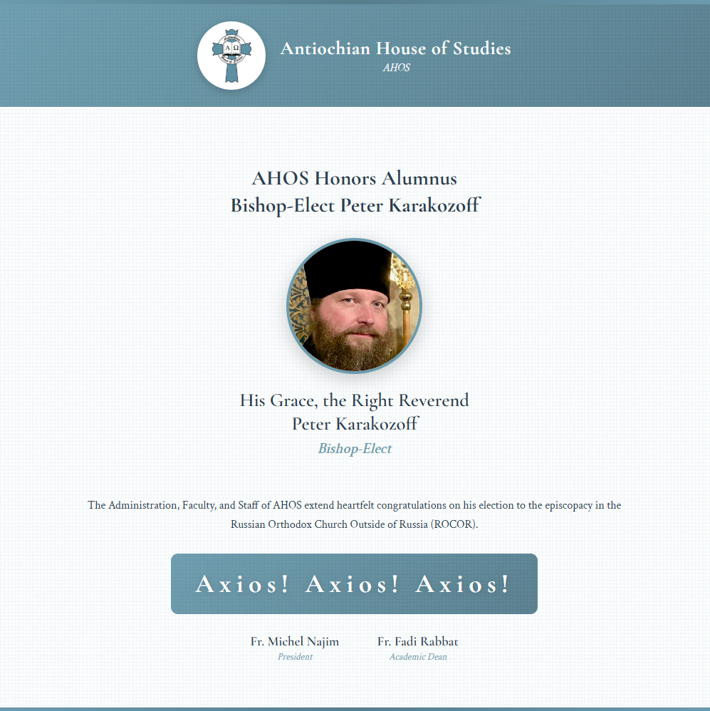 AHOS Honors Alumnus Bishop-Elect Peter Karakozoff
